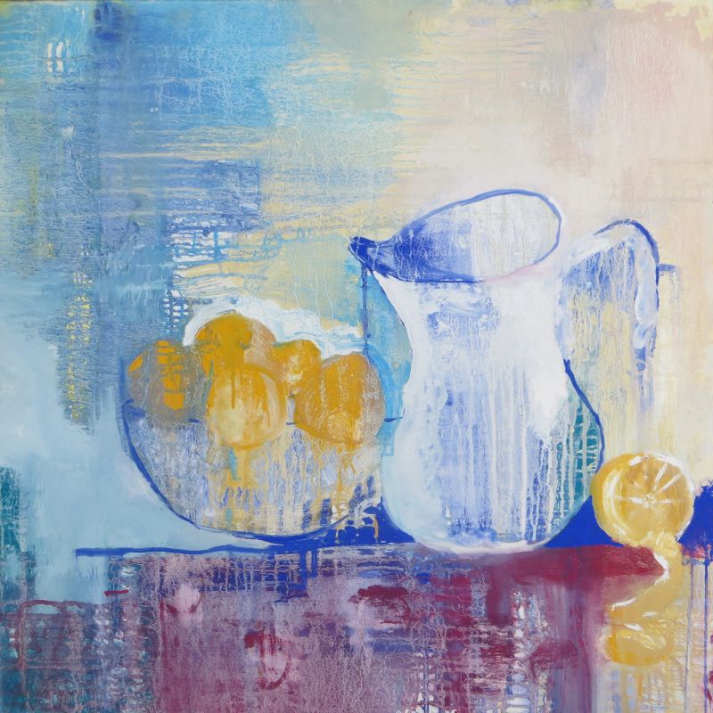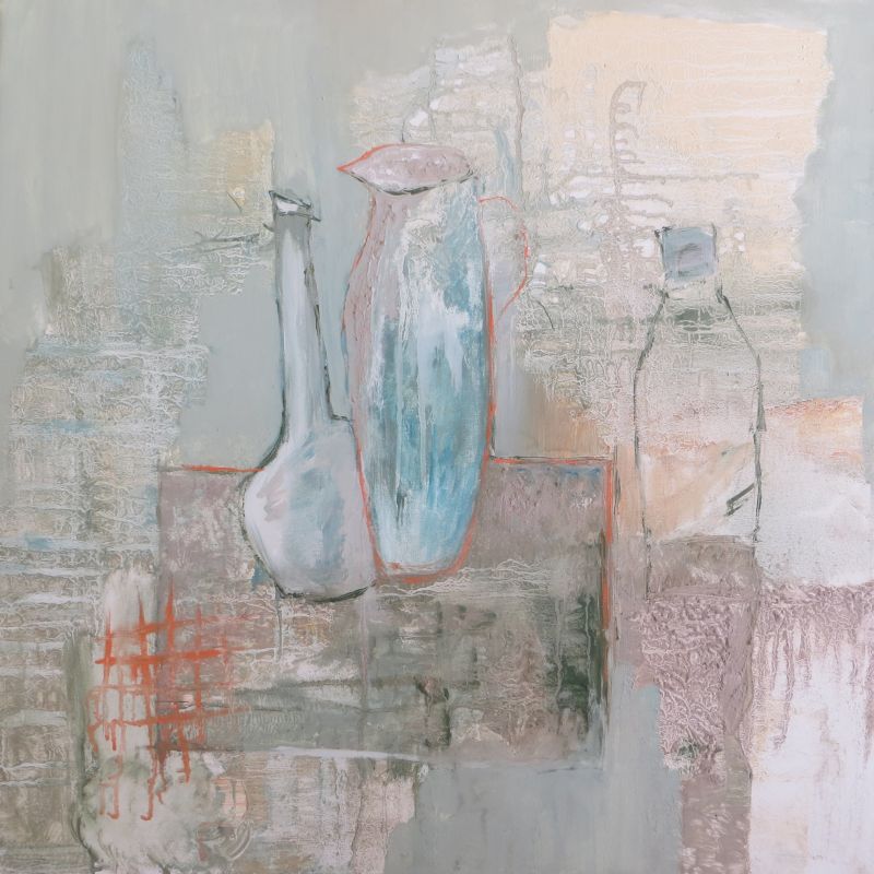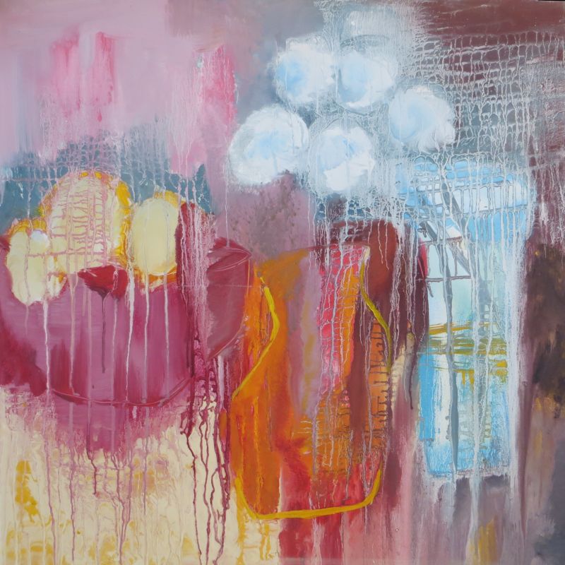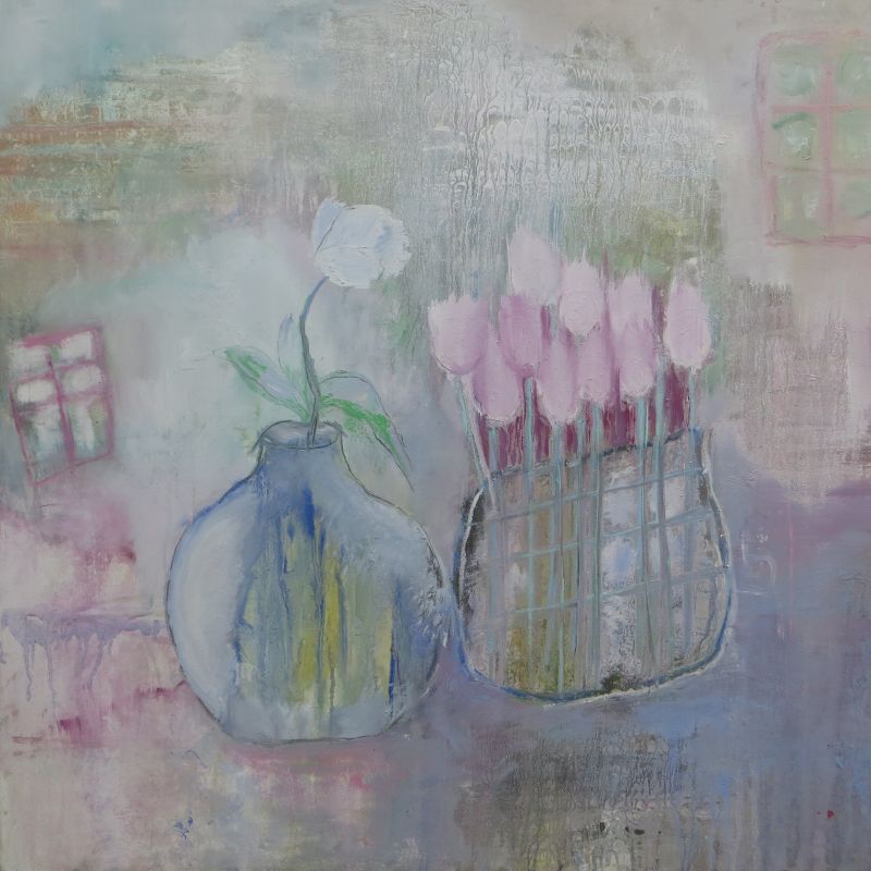 Tassen, Teekannen, Vasen , Blumen und Gläser sind einfache Dinge, die in der Hektik und Schnelllebigkeit des Alltags zu funktionalen Objekten degradiert werden. Ich befreie sie aus ihrem Funktionsmodus. Ich nehme mir die Zeit und lasse sie auf mich wirken und dann, erst zaghaft und leise erzählen sie mir ihre Geschichte ... kaum habe ich sie umrissen verschwimmen sie auch schon wieder ... lösen sich auf in Farbe und in Erinnerung ...