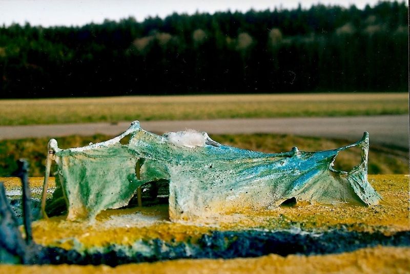 Die facettenreichen Landschaftsmodelle stehen wie Fremdkörper in der realen Landschaft. In der direkten Gegenüberstellung von Realem und Künstlichem offenbart sich der Zwiespalt zwischen Natur-und Kunstform. Die Rahmen und Leisten, mit denen die künstlichen Landschaften in ein Raster eingepasst und gleichsam kartographiert werden, verstärken jenen Eindruck noch zusätzlich. Mit dem Fotoapparat wird ein kleiner Ausschnitt der Kunstlandschaft anvisiert. Das solchermaßen fokussierte Detail erhebt sich als dreidimensionales Objekt vor der realen Landschaft (Würmtal bei Gauting), wodurch die verschiedenen Realitätsebenen gleichsam ineinander verschmelzen.